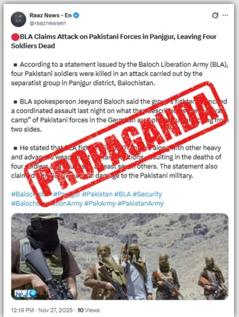 بلوچستان میں مبینہ عسکری حملے سے متعلق سوشل میڈیا پر گردش کرنے والے دعوے کو سرکاری اور معتبر ذرائع نے مکمل طور پر مسترد کر دیا ہے۔ سماجی رابطے کی