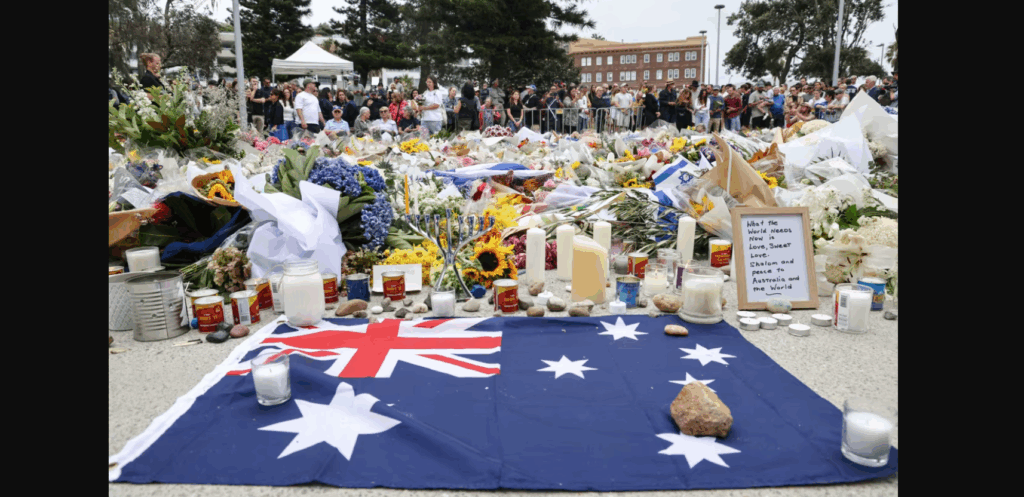ادھر، حملے کے متاثرین سے اظہارِ یکجہتی اور سوگ کے اظہار کے لیے سڈنی اور آسٹریلیا کے دیگر شہروں میں غیرمعمولی مناظر دیکھنے میں آئے۔ سڈنی میں بونڈی پویلین کے باہر قائم یادگاری مقام پر سینکڑوں افراد نے پھول رکھے اور شمعیں روشن کیں۔ مقامی رہائشی ایک دوسرے کو گلے لگاتے، دعا کرتے اور گھٹنوں کے بل بیٹھ کر خراجِ عقیدت پیش کرتے دکھائی دیے۔مقامی رہائشی سیم چپکن نے رائٹرز سے گفتگو میں کہا،“میں واقعی اس سانحے کو قبول کرنے میں شدید مشکل محسوس کر رہا ہوں۔ ہمارے خاندان کو اپنے 9 اور 10 سالہ بچوں سے جو باتیں کرنی پڑیں، وہ ہمیں توڑ کر رکھ گئی ہیں۔ یہ ہمارے یہودی کمیونٹی کے لیے ایک افسوسناک دن ہے، بونڈی کمیونٹی کے لیے غم کا دن ہے اور پورے آسٹریلیا کے لیے دل دہلا دینے والا دن ہے۔”