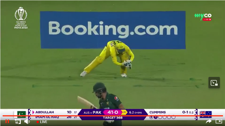 جبکہ اس سے قبل انٹرنیشنل کرکٹ کونسل ورلڈ کپ کے 18 ویں میچ میں بنا کسی وکٹ کے نقصان پر پاکستان نے 45 اسکور بنا لیئے تھے جبکہ اس سے قبل ڈیوڈ وارنر اور مچل مارش کی شاندار سینچریوں کی بدولت نے آسٹریلیا نے پاکستان کو جیت کے لیے 368 رنز کا بڑا ہدف دے دیا تھا، واضح رہے کہ بنگلورو کے چنا سوامی اسٹیڈیم میں کھیلے جارہے میچ پاکستان کی دعوت پر پہلے بیٹنگ کرتے ہوئے آسٹریلیا نے مقررہ 50 اوورز میں 9 وکٹوں کے نقصان پر 367 رنز بنائے اور پاکستان کے لیے 368 رنز کا ہدف سیٹ کیا۔