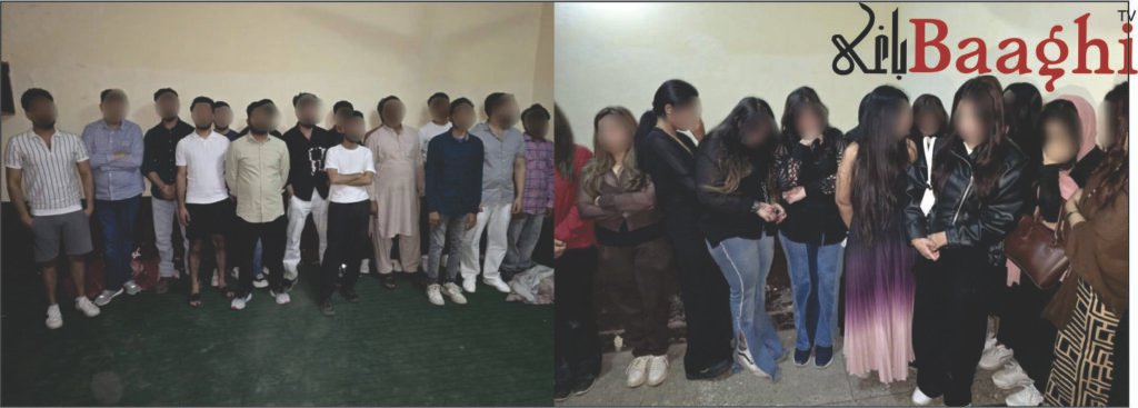 تفصیل کے مطابق تھانہ مصطفیٰ آباد پولیس نے ڈی ایس پی صدر افضل ڈوگر کی سربراہی میں ایک فارم ہاؤس پر چھاپہ مارا اور ڈانس پارٹی کے دوران نشے میں دھت 30 مردوں اور 25 لڑکیوں کو رنگے ہاتھوں گرفتار کر لیا۔ پولیس نے فارم ہاؤس سے شراب کی بوتلیں، ڈانسنگ پلز، شیشہ پینے کا سامان اور ساؤنڈ سسٹم بھی قبضے میں لے لیا۔