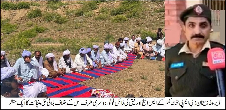 تفصیل کے مطابق ڈیرہ غازی خان کے علاقہ تھانہ بواٹہ کی حدود میں واقع پیرو جاڑانی کے ڈیرے پر بارڈر ملٹری پولیس تھانہ کھر کے ایس ایچ او رفیق بجرانی کیخلاف انوکھی پنچایت بلائی گئی جس میں پنچایتی ممبران بجرانی اور جاڑانی قبیلے سے چار چار افراد لیے گئے جنہوں نے ایس ایچ او تھانہ کھر کو پنچایت میں طلب کیا جس پر جاڑانی قبیلہ اور بجرانی قبیلہ کے پنچایتوں نے ایس ایچ او کو صفائی کا موقع دئیے بغیر مجرم ٹھہراتے ہوئے 60 لاکھ روپے جرمانہ ادا کرنے حکم دیا بصورت دیگر علاقہ بدری کا فرمان جاری کر دیا ،جس پر ایس ایچ او نے خود کواور اپنی برادری کو بچاتے ہوئے 10 لاکھ روپے جرمانہ موقع پر ادا کر دیا، بقایا رقم قسطوں میں ادا کرنے کی یقین دہانی کرائی جس پر ایس ایچ او اور اسکی برادری کی جاں بخشی ہوئی، ذرائع کے مطابق اس پنچایتی فیصلے کی اطلاع پر رسالدار بارڈر ملٹری پولیس سردار وقار عزیز خان قیصرانی نے نوٹس لیکر ایک کانسٹیبل کو لائن طلب کر لیا اور ذرائع کا یہ بھی بتانا ہے رسالدار نے اس واقع پر شدید غم و غصّے کا اظہار کیا ہے اور سخت کارروائی کا عندیہ دے دیا، یاد رہے کہ دو ہفتے قبل ایس ایچ او تھانہ کھر نے بد نام زمانہ چور گینگ کے سرغنہ شاہد جاڑانی کو کھر بازار سے آفیسران کے حکم پر گرفتار کیا تھا جو کہ بین الصوبائی کوئٹہ روڈ پر وارداتوں میں ملوث تھا اس کی گرفتاری پر چور کے عزیزوں نے ایس ایچ او پر دھاوا بول دیا تھا اور تشدد کیا تھا گرفتار ملزم کو چھڑا کر لے گئے تھے اس دوران ایس ایچ او کی برادری بجرانی اور چور گینگ سرغنہ اور اس کے ساتھیوں کے درمیان تصادم ہوا جس میں متعدد افراد زخمی ہوئے تھے اس واقع پر رسالدار بارڈر ملٹری پولیس سردار وقار عزیز خان قیصرانی سینئر سرکل آفیسر سردار عبداللہ خان لغاری نے موقع پر پہنچ کر حالات کنٹرول کر لیے تھے جب اس پنچایتی فیصلے سے متعلق ایس ایچ او تھانہ کھر رفیق بجرانی سے فون پر مؤقف لیا تو انہوں نے تسلیم کیا کہ پنچایت نے مجھ پر 60 لاکھ روپے جرمانہ عائد کیا جس میں سے 10 لاکھ روپے ادا کر دئیے ہیں بقایا رقم قسطوں میں ادا کرنی ہے اس اہم واقعہ سے متعلق بارڈر ملٹری پولیس کے کمانڈنٹ مشتاق احمد ٹوانہ سے انکا موقف لینے کے لیے انکے دفتر گئے تو وہ موجود نہیں تھااوران کا موبائل فون بھی بند تھا-