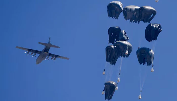 متحدہ عرب امارات اور اردن نے فضا سے غزہ میں امدادی سامان پہنچانے کا آغاز کر دیا ہے۔ اردنی حکام کے مطابق دارالحکومت عمان سے 25 ٹن امدادی سامان پیراشوٹ کے ذریعے غزہ میں گرایا گیا۔