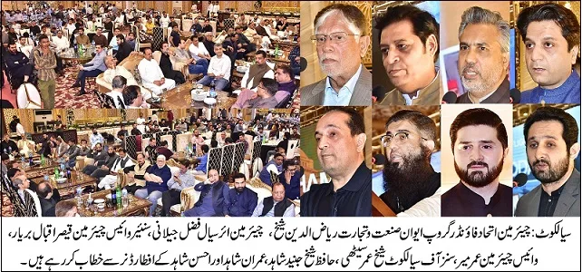 انہوں نے ان خیالات کا اظہار سنز أف سیالکوٹ ڈائریکٹر ایئرسیال شیخ عمر سیٹھی, حافظ شیخ جنید شاہد, عمران شاہد اور احسن شاہد کی طرف سے چیئرمین فضل جیلانی سینئروائس چیئرمین قیصر اقبال بریار,وائس چیئرمین عمر میر اور چیف ایگزیکٹو آفیسر امین احسن کو اگلے تین برسوں کے لئے منتخب ہونے کی خوشی میں دیئے جانے والے استقبالیہ اور افطار ڈنر سے خطاب کرتے ہوئے کیا۔