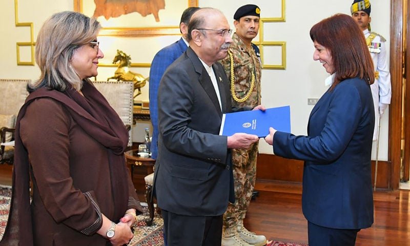 ترجمان دفتر خارجہ کے مطابق صدر مملکت نے یونان کی سفیر مسز ایلینی پوریکی، یورپی یونین کے سفیر ریمونڈاس کاروبالیس اور ہنگری کے سفیر ڈاکٹر زولتان ورگا سے اسناد وصول کیں۔صدر آصف زرداری نے نئے سفیروں کو تقرری پر مبارکباد دی اور پاکستان آمد پر خوش آمدید کہا۔ اس موقع پر انہوں نے زور دیا کہ نئے سفراء دوطرفہ تعاون کے فروغ اور باہمی مفاد کے تعلقات کو مزید مستحکم بنانے میں اہم کردار ادا کریں گے۔