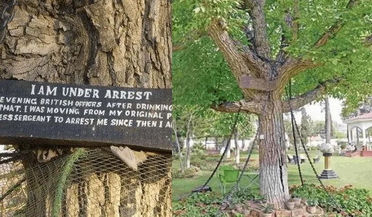 جبکہ اسی درخت پر ایک بورڈ بھی لٹکایا گیا ہے، جس پر انگریزی زبان میں لکھا ہے، کہ “میں گرفتار ہو گیا ہوں، ایک برطانوی افسر کو جو کہ نشے میں دھت تھا، اسے یہ لگا کہ میں اپنی اصل جگہ سے ہٹ رہا ہوں، تو اس نے مجھے گرفتار کرنے کا حکم دیا، اُس وقت سے میں گرفتار ہوں۔
