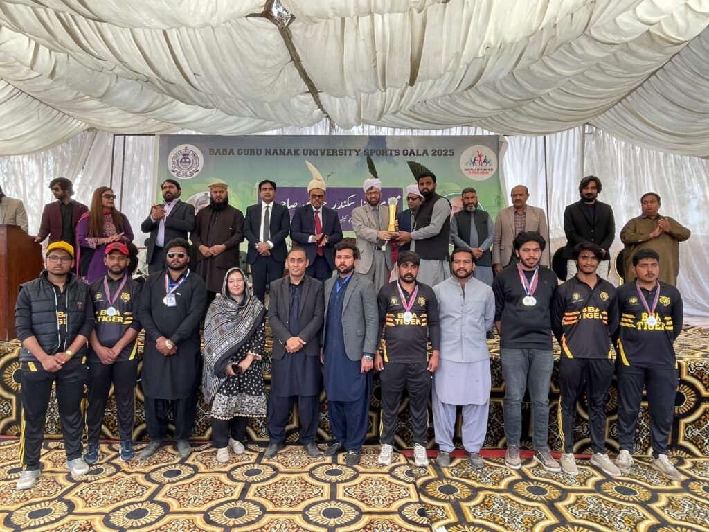 پروفیسر ڈاکٹر محمد افضال (وائس چانسلر، بابا گرو نانک یونیورسٹی)، مسٹر مبشر طارق (رجسٹرار) اور ڈاکٹر یاسر سعید (ڈائریکٹر اسٹوڈنٹ افیئرز) نے معزز مہمانوں کے ہمراہ کامیاب ٹیموں میں ٹرافیاں اور تمغے تقسیم کیے۔