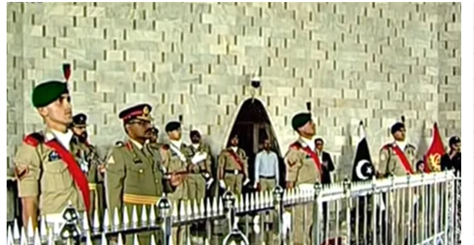 بانی پاکستان کے یوم پیدائش کے موقع پر آج ملک بھر میں عام تعطیل ہے، مزار قائد پر گارڈز کی تبدیلی کی پر وقار تقریب منعقد ہوئی،مزار قائد پر پاکستان ملٹری اکیڈمی (کاکول) کے دستے نے گارڈز کے فرائض سنبھال لیے ہیں،تقریب کے مہمان خصوصی میجر جنرل افتخار حسن چوہدری تھے،مہمان خصوصی میجر جنرل افتخار حسن چوہدری نے مزار پر پھول رکھے اور فاتحہ خوانی کی،میجر جنرل افتخار حسن چوہدری نے مزار قائد پر مہمانوں کی کتاب میں تاثرات قلمبند کیے.