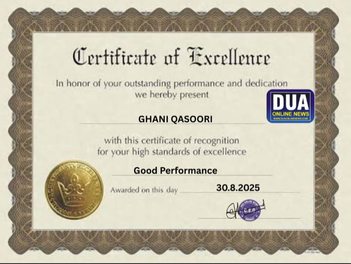 دعا آن لائن نیوز پاکستان کی جانب سے بطور بیورو چیف قصور حسن کارکردگی پر حوصلہ افزائی
