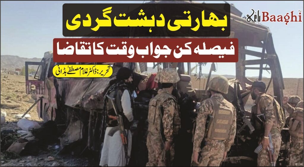 بھارت جو خود کو دنیا کی سب سے بڑی جمہوریت کہلوانے کا ڈھونگ رچاتا آرہاہے، برسوں سے اپنے ہمسایوں خاص کر پاکستان کے خلاف پراکسی وار کے ذریعے دہشت گردی کی سرپرستی کر رہا ہے۔ 21 مئی 2025 کو بلوچستان کے شہر خضدار میں ایک سکول بس پر خودکش حملہ اس کی بھیانک مثال ہے، جس میں تین معصوم بچوں سمیت پانچ افراد شہید اور 38 زخمی ہوئے۔ پاک فوج کے شعبہ تعلقات عامہ (آئی ایس پی آر) نے واضح کیا کہ یہ بزدلانہ فعل بھارت کی منصوبہ بندی کے تحت اس کی پراکسی تنظیم بلوچستان لبریشن آرمی (بی ایل اے) نے انجام دیا۔ یہ حملہ بھارت کی اس شدید مایوسی کی عکاسی کرتا ہے جو اسے آپریشن سندور کے جواب میں آپریشن بنیان مرصوص کی صورت میں ذلت آمیز شکست کا سامنا کرنا پڑا۔