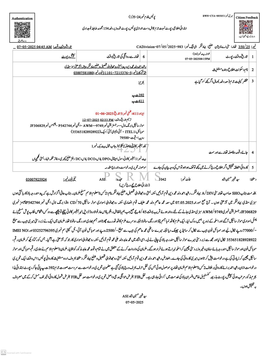 ڈسٹرکٹ پولیس آفیسر کامران اصغر نے کارروائی کرنے والی ٹیم کو شاباش دیتے ہوئے کہا کہ جرائم پیشہ عناصر کسی رعایت کے مستحق نہیں، عوام کی جان و مال کا تحفظ پولیس کی اولین ترجیح ہے۔ انہوں نے مزید کہا کہ ضلع بھر میں ایسے تمام اشتہاری مجرموں کے خلاف گھیرا تنگ کر دیا گیا ہے تاکہ امن و امان برقرار رکھا جا سکے۔