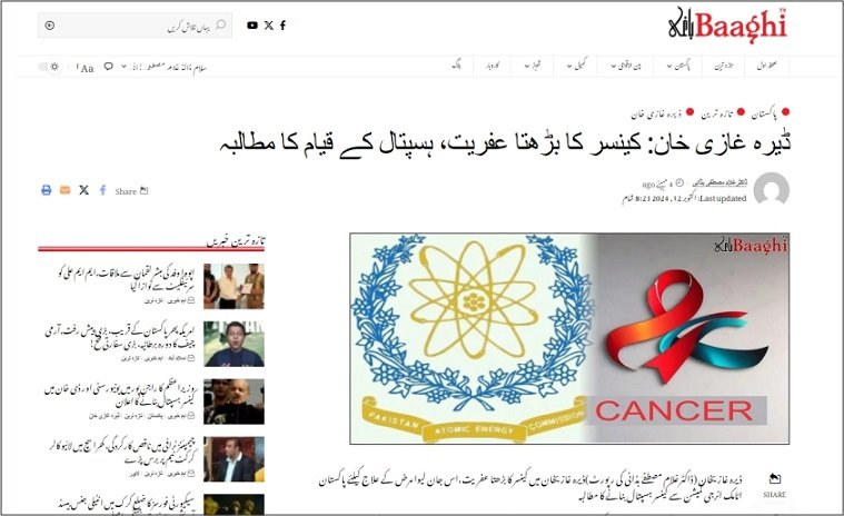 ڈیرہ غازی خان میں اس وقت کوئی سرکاری یا نجی سطح پر بڑا کینسر ہسپتال موجود نہیں، جس کی وجہ سے مریضوں کو علاج کے لیے ملتان، لاہور اور دیگر شہروں کا رخ کرنا پڑتا ہے جو کہ زیادہ تر مریضوں کی استطاعت سے باہر ہے۔ عوام طویل عرصے سے پاکستان اٹامک انرجی کمیشن (PAEC) کے تحت جدید کینسر ہسپتال کے قیام کا مطالبہ کر رہے تھے تاکہ خطے میں موجود مریضوں کو بروقت اور معیاری علاج فراہم کیا جا سکے۔