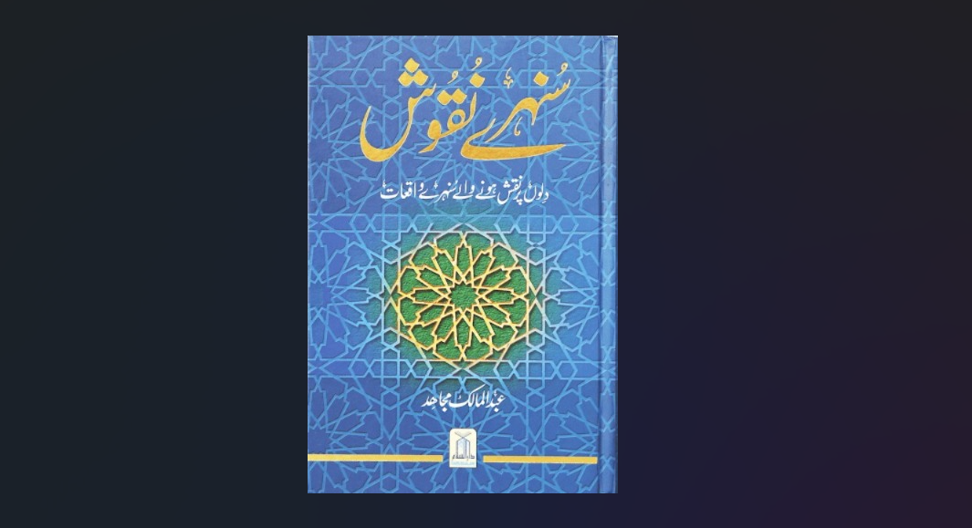 نام کتاب : سنہرے نقوش نام مئولف : عبدالمالک مجاہد ناشر : دارالسلام انٹرنیشنل ، لوئر مال ، نزد سیکرٹریٹ سٹاپ ، لاہور صفحات : 384 قیمت : 1850روپے زیر