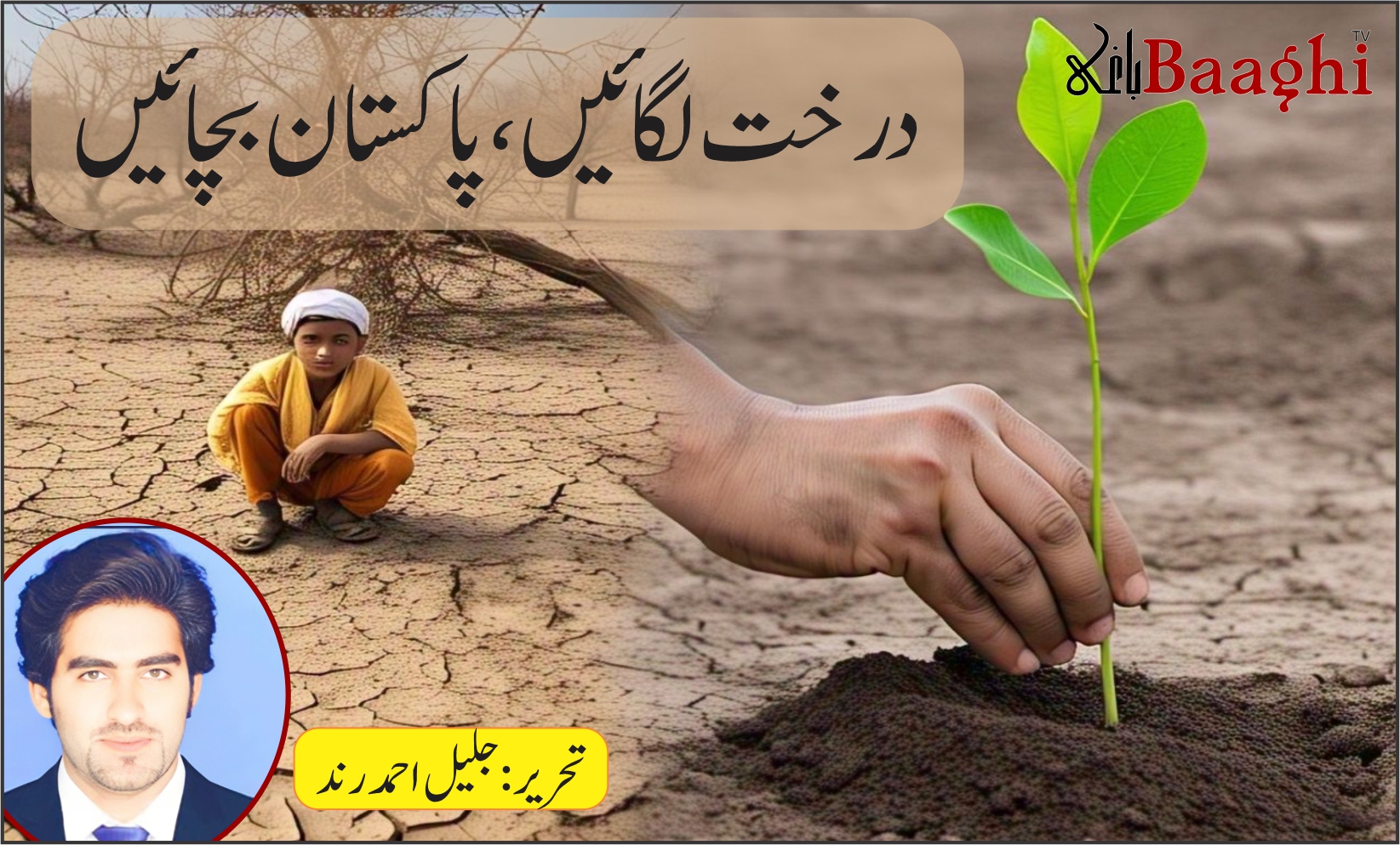 درخت لگائیں، پاکستان بچائیں تحریر : جلیل احمد رند موسمیاتی تبدیلی آج دنیا کو درپیش سب سے بڑے چیلنجز میں سے ایک ہے اور پاکستان سب سے زیادہ خطرے سے