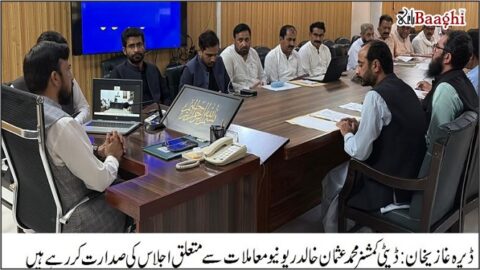 ڈیرہ غازی خان (باغی ٹی وی ،سٹی رپورٹرجواد اکبر)ڈپٹی کمشنر ڈیرہ غازی خان محمد عثمان خالد کی زیر صدارت ریونیو معاملات سے متعلق ایک اہم اجلاس منعقد ہوا جس میں
