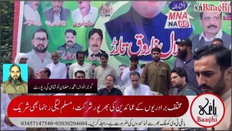 گوجرانوالہ(باغی ٹی وی ،نامہ نگار محمدرمضان نوشاہی) این اے 66 ضمنی الیکشن، بلال فاروق تارڑ کے حق میں برادریوں کی حمایت کا اعلان تفصیل کے مطابق گوجرانوالہ میں ضمنی الیکشن