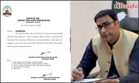 ننکانہ صاحب (باغی ٹی وی نامہ نگار احسان اللہ ایاز)تحصیل سانگلہ ہل کے گورنمنٹ گرلز پرائمری سکول شریف پورہ میں خاتون ٹیچر کی جانب سے طالب علم پر تشدد کے