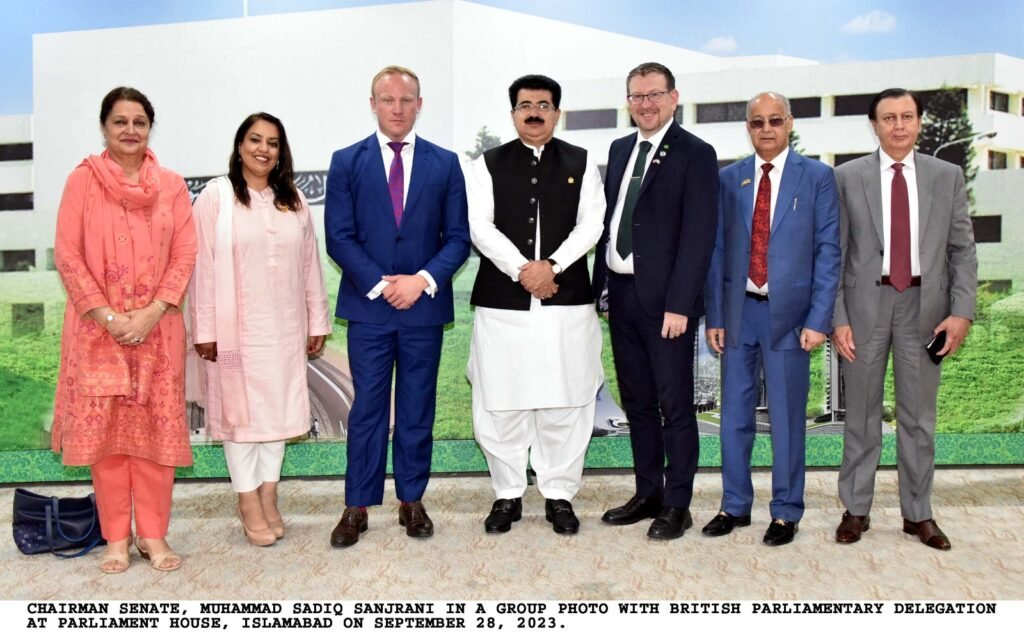 چیئرمین سینیٹ محمد صادق سنجرانی سے برطانوی پارلیمنٹ کے ایک وفد نے پارلیمنٹ ہاؤس میں ملاقات کی جبکہ وفد میں جموں و کشمیر سیلف ڈیٹرمینیشن موومنٹ انٹرنیشنل (JKSDMI) کے چیئرمین راجہ نجابت حسین، شیڈو منسٹر اور ایم پی ناز شاہ، مسٹر سیم ٹیری ایم پی، اور اینڈریو گیوین ایم پی شامل تھے۔