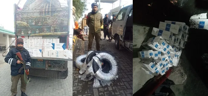 تفصیلات کے مطابق ڈی پی او احمد محی الدین کی ہدایت پر سمگلنگ کی روک تھام کے لئے ضلع بھر میں چیکنگ کا سلسلہ جاری ہے اسی چیکنگ کے سلسلہ چیک پوسٹ غازی گھاٹ پولیس نے ہفتہ واری کاروائی کرتے ہوئے لاکھوں روپے مالیت کے سمگل ہونے والے 8عدد ٹائرز،246 کارٹن سگریٹ اور 3 بیگ شاپر کو قبضہ میں لیکر کاروائی کے بعد کسٹم حکام کے حوالہ کر دیا گیا ہے۔