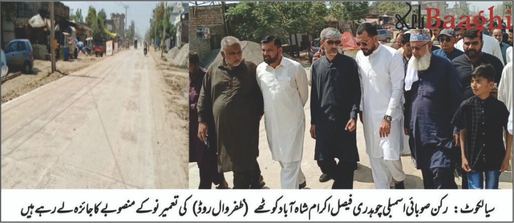سیالکوٹ (بیوروچیف شاہد ریاض) رکن صوبائی اسمبلی چودھری فیصل اکرام نے کہا ہے کہ 6 کروڑ روپے کی لاگت سے شاہ آباد کوٹھے روڈ کی آر آر سی تعمیر کا منصوبہ مکمل کر لیا گیا ہے۔ محکمہ ہائی وے ڈویژن کے زیر نگرانی اس منصوبے کا ٹینڈر میرٹ پر 30 فیصد کم لاگت پر الاٹ کیا گیا اور ٹائم لائن کے اندر روڈ کی تعمیر مکمل کر لی گئی۔