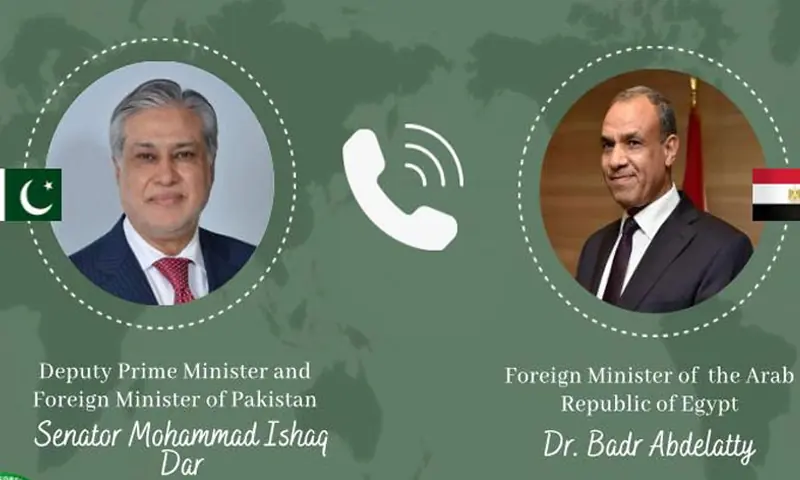 نائب وزیراعظم و وزیر خارجہ اسحٰق ڈار اور مصر کے وزیر خارجہ بدر عبدالعاطی کے درمیان ٹیلیفونک رابطہ ہوا، جس میں غزہ میں امن کی کوششوں سمیت خطے کی صورتحال پر تبادلہ خیال کیا گیا۔