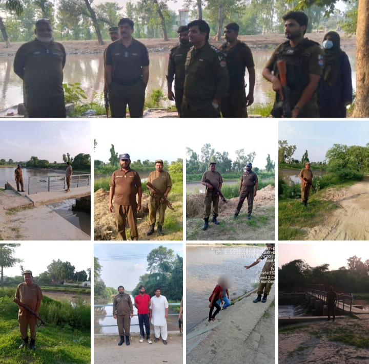 ضلعی انتظامیہ کی جانب سے حالیہ بارشوں اور ممکنہ سیلابی صورتحال کے پیش نظر نہروں میں نہانے پر پابندی عائد ہے اور ضلع بھر میں نہروں میں نہانے والے پوائنٹس پر پولیس نفری تعینات کر دی گئی ہے