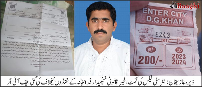 ڈیرہ غازیخان میں انٹرسٹی ٹیکس کے نام پر بین الصوبائی گڈز ٹرانسپورٹ سے فداحجانہ کے غنڈوں کی بھتہ وصولی جاری،انتظامیہ حصہ لیکرخاموش، انتظامیہ کی گڈزٹرانسپورٹ کو چپ کرانے کیلئے غیرقانونی ٹیکس کے نام پر بھتہ وصولی کی نام نہادٹھیکیدارکے ملازمین پر لولی لنگڑی ایف آئی آر درج کرائی گئی،ایک قومی اخبارکے رپورٹر کے ذریعے گڈزٹرانسپورٹ کو چپ کرانے کیلئے ایک لاکھ روپے ماہانہ دینے کی پیش کش ۔روزانہ ڈیرہ غازیخان سے تقریباََ 2000سے زائد چھوٹی بڑی گاڑیاں گزر کر پاکستان کے مختلف شہروں میں سامان کی ترسیل کرتی ہیں ،زیادہ تربلوچستان سے آنے والے ٹرک اور منی گڈزان کا نشانہ، 200روپے سے 400روپے فی گاڑی گن پوائنٹ پوائنٹ پر بھتہ لیا جاتا ہے ،گڈزٹرانسپورٹ ایسوسی ایشن کے جنرل سیکرٹری بلال لغاری