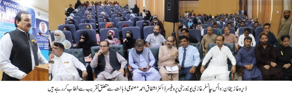 ڈیرہ غازی خان (باغی ٹی وی نیوز رپورٹر شاہد خان) غازی یونیورسٹی ڈیرہ غازی خان میں شعبہ کمپیوٹر سائنس اور انٹرنیٹ سوسائٹی کے اشتراک سے ’’مصنوعی ذہانت‘‘ کے موضوع پر دو روزہ تربیتی ورکشاپ کا انعقاد کیا گیا۔ افتتاحی سیشن کے مہمان خصوصی وائس چانسلر پروفیسر ڈاکٹر اشفاق احمد تھے، جبکہ پروفیسر ڈاکٹر ارشد منیر، پروفیسر ڈاکٹر سعد اللہ لغاری، ڈاکٹر محمد ابو بکر، ڈاکٹر محمد علی تارڑ، ڈاکٹر جاوید اقبال، ڈاکٹر وسیم عباس گل، ڈاکٹر عنصر علی، کرنل اشفاق احمد، انجینئر عدیل نیئر سمیت دیگر اساتذہ کرام اور طلبہ و طالبات کی کثیر تعداد شریک ہوئی۔