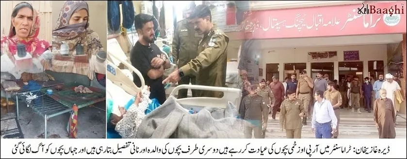 آرپی او ڈی جی خان کیپٹن (ر)سجاد حسن خان ضلع ڈیرہ غازی خان تھانہ صدر کی حدود میں 03 معصوم بچوں کو تیز دھار آلہ سے زخمی اور آگ لگانے کا واقعہ کا نوٹس لیتے ہوئےفوری طور پر ٹیچنگ ہسپتال ڈی جی خان پہنچ گئے اس موقع پر ایس پی انویسٹی گیشن بختیار احمد بھی ان کے ہمراہ تھے۔