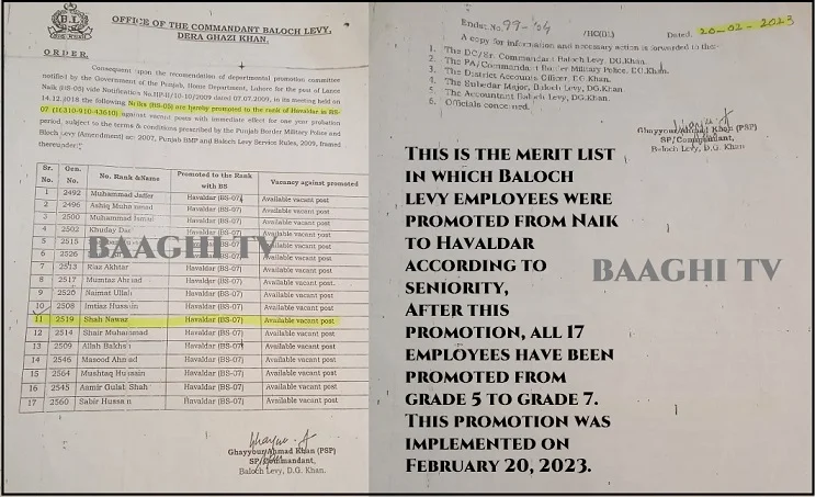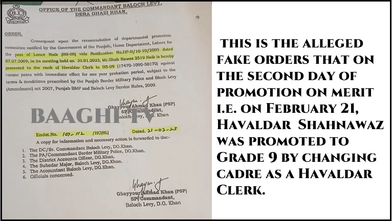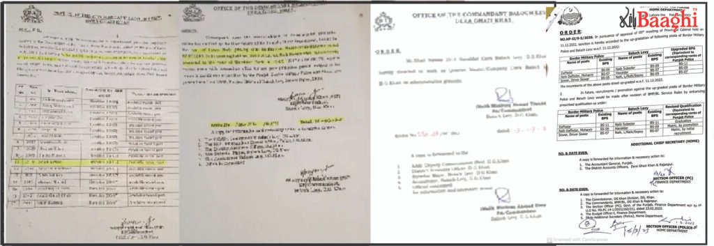 ڈیرہ غازیخان : بلوچ لیوی میں کیڈر تبدیل ایک ہی ملازم کی 2 روز میں2 ترقیاں