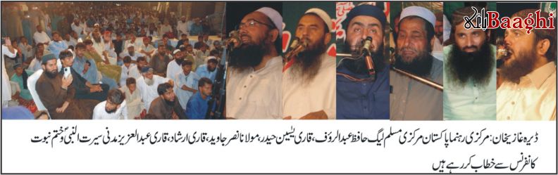 ڈیرہ غازی خان(باغی ٹی وی ،سٹی رپورٹرجواداکبر) پاکستان مرکزی مسلم لیگ ڈیرہ غازی خان نے شہر میں ایک بڑی ختم نبوت کانفرنس کا انعقاد کیا۔ اس کانفرنس میں ہزاروں کی تعداد میں کارکنان، اساتذہ، وکلاء، علماء اور طلبہ نے شرکت کی۔ کانفرنس کا مقصد ختم نبوت کے عقیدے کو اجاگر کرنا اور اس پر ہونے والے کسی بھی حملے کا مقابلہ کرنے کا عزم ظاہر کرنا تھا۔
