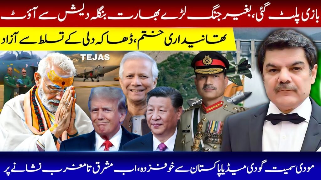 انہوں نے کہا کہ 50 سال بعد تاریخ نے پلٹا کھایا ہے۔گیلپ سروے کے مطابق 47% بنگلہ دیشی عوام بھارت کو دشمن سمجھتے ہیں۔اسحاق ڈار کے ڈھاکہ دورے کے بعد پاکستان اور بنگلہ دیش قریب آگئے ہیں۔ویزا فری انٹری، سول سرونٹس اور فوجی افسران کی تربیت، اور مونگا بندرگاہ تک رسائی جیسے معاہدے ہو چکے ہیں۔مبشر لقمان کے مطابق مئی میں پاک فضائیہ نے بھارتی رافیل طیارے مار گرائے، نیوی بغیر لڑے واپس چلی گئی۔بھارت اربوں ڈالر کا اسلحہ خرید رہا ہے مگر خوف کم نہیں ہوا۔بھارتی میڈیا اور تجزیہ کار اب اپنی ہی حکومت پر تنقید کر رہے ہیں۔