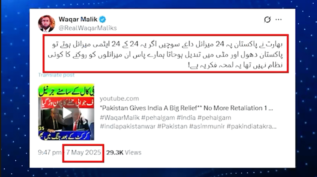دوسری جانب پاکستان کے اندر ایسے عناصر بھی سامنے آئے جو بھارت کی زبان بولتے اور بھارتی پالیسیوں کی حمایت کرتے نظر آئے۔ یہ لوگ پاکستان کے اندر رہتے ہوئے بھی دشمن کی خوشنودی حاصل کرنے کی کوشش کر رہے تھے۔ ان کی سازشیں اور مکروہ چہرے قوم کے لیے ایک سنگین خطرہ ہیں۔خاص طور پر تحریک انصاف کے چند رہنماؤں اور حامیوں کی سوشل میڈیا سرگرمیاں بھارت کے حق میں دیکھنے میں آئیں، جو کہ پاکستان کی دفاعی فتح کی روح کے خلاف ہیں۔ ان میں صنم جاوید خان، علیمہ خان، سلمان احمد، فلک جاوید خان، عادل راجہ، وقار ملک، عمران افضل راجہ، بابا کوڈا، شیر بانو، طیبہ راجہ، انور لودھی، امجد حمید اور دیگر شامل ہیں۔ ان رہنماؤں اور کارکنوں نے نہ صرف بھارت کی زبان بولی بلکہ اپنے مؤقف سے قوم کی یکجہتی کو نقصان پہنچانے کی کوشش کی۔یہ صورتحال پاکستان کی قومی سلامتی کے لیے ایک بڑا چیلنج ہے۔ ایسے عناصر کی موجودگی جو پاکستان کی سلامتی اور عزت کو نقصان پہنچانے کے خواہش مند ہوں، ملکی مفادات کے خلاف ہیں۔ قوم کا مطالبہ ہے کہ ایسے افراد کے خلاف سخت کارروائی کی جائے تاکہ پاکستان کی سالمیت کو محفوظ بنایا جا سکے۔