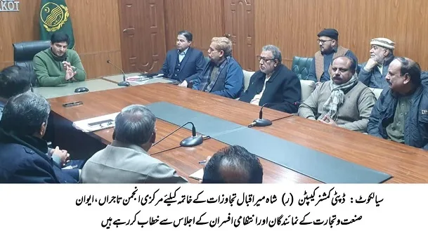 ڈپٹی کمشنر کیپٹن (ر) شاہ میر اقبال نے مرکزی انجمن تاجران اور ایوان صنعت و تجارت کے نمائندگان کو ہدایت کی کہ وہ ٹریفک کے بہاؤ میں رکاوٹ بننے والی تجاوزات کی نشاندھی کریں تاکہ ٹریفک کا بہاؤ یقینی بنایا جاسکے۔