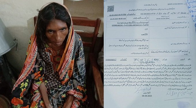 تفصیلات کے مطابق اوچ شریف کے نواحی علاقے موضع ککس میں 30 سالہ ذہنی معذور شہناز بی بی کے ساتھ زنا بالجبر کا واقع پیش آیا جو کہ ذہنی طور پر معذور ہے ،ایف آئی آر کے مطابق ذہنی معذور 30 سالہ خاتون کے بھانجےمحمدصابرولدعبدالمجید نے تھانہ اوچ شریف میں درخواست دائر کرتے ہوئے کہا کہ گزشتہ روز بوقت 6/30بجے شام میں اپنی ممانی فیض مائی کو ملنے اس کے گھر گیا میری ممانی گھرپر موجود نہ تھی ،
