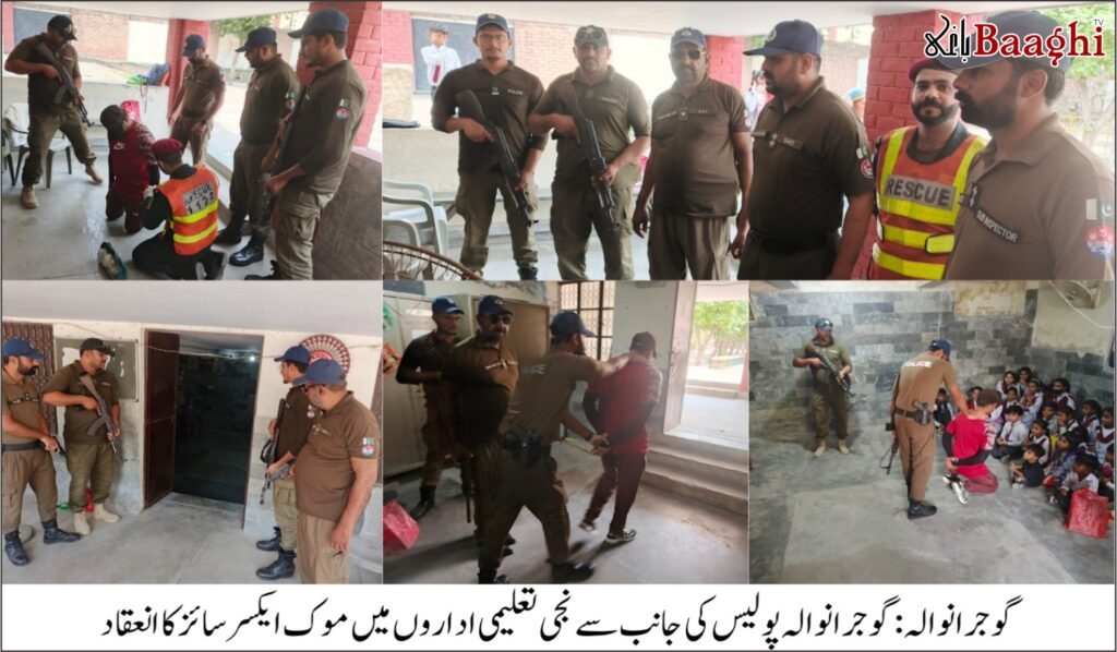 گوجرانوالہ (باغی ٹی وی، نامہ نگار محمد رمضان نوشاہی) سٹی پولیس آفیسر محمد ایاز سلیم کی ہدایت پر گوجرانوالہ پولیس کی جانب سے تعلیمی اداروں میں ہنگامی صورتحال سے نمٹنے کے لیے موک ایکسرسائز کا باقاعدہ آغاز کر دیا گیا ہے۔ اس اقدام کا مقصد ناگہانی اور دہشت گردی کے ممکنہ خطرات کے دوران فوری ردعمل کی صلاحیت کو بہتر بنانا ہے۔