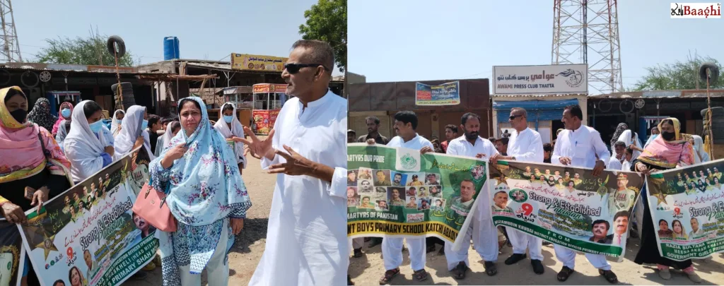 ٹھٹھہ،باغی ٹی وی (نامہ نگار بلاول سموں کی رپورٹ) مطابق محکمہ تعلیم سندھ کی کال پر محکمہ تعلیم ٹھٹھہ نے 9 مئی کو پرائمری کلسٹر اسکول کچی آبادی مکلی، گرلز پرائمری اسکول شاہ محمد مگسی میں پاک فوج کی حمایت میں ریلی نکالی۔