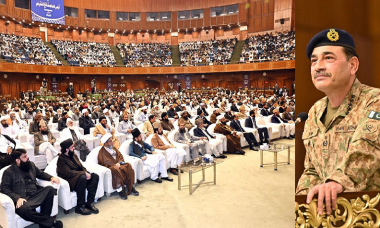 فیلڈ مارشل کا کہنا تھا کہ جس قوم نے علم اور قلم کو چھوڑا، انتشار اور فساد نے وہاں جگہ لی، عزت اور طاقت تقسیم سے نہیں، محنت اور علم سے حاصل ہوتی ہے دہشت گردی پاکستان کا نہیں بھارت کا وتیرا ہے، ہم دشمن کو چھپ کے نہیں للکار کر مارتے ہیں، معرکہ حق میں اللہ کی نصرت سے کامیابی ملی،اسلامی ریاست میں ریاست کے علاوہ کوئی جہاد کا حکم نہیں دے سکتا، علما قوم کو متحد رکھیں اور قوم کی نظر میں وسعت پیدا کریں،کانفرنس میں فوج کے موقف، اسلامی تعلیمات اور قومی ترقی میں علماء کے کردار پر زور دیا گیا، اور فیلڈ مارشل نے تاکید کی کہ پاکستان کی سلامتی، وحدت اور اسلامی اقدار کو برقرار رکھنا ہر شہری کی ذمہ داری ہے، پاکستان ہمیشہ زندہ باد۔