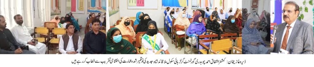 ڈیرہ غازی خان (باغی ٹی وی، سٹی رپورٹر جواد اکبر بھٹی)کمشنر ڈیرہ غازی خان ڈویژن اشفاق احمد چوہدری نے گورنمنٹ گرلز ہائی سکول ملا قائد شاہ جدید کا دورہ کیا اور سکول کی نئی تعمیر شدہ عمارت کا باقاعدہ افتتاح کیا۔ اس موقع پر انہوں نے اساتذہ اور طالبات سے ملاقات کی اور تعلیمی ماحول کو بہتر بنانے کے عزم کا اظہار کیا۔