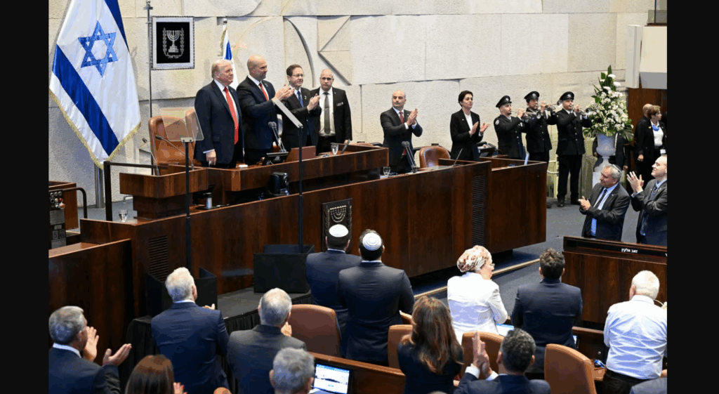 یروشلم میں امریکی صدر ڈونلڈ ٹرمپ نے اسرائیلی پارلیمنٹ میں ایک غیر معمولی اجلاس سے خطاب کیا۔ اس موقع پر امریکی وفد کی بڑی تعداد کنیسٹ میں موجود تھی، جس میں امریکہ کے اعلیٰ عہدیداران شامل تھے۔