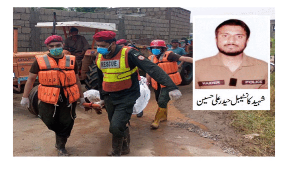 جہلم: بارشوں کے نتیجے میں پیدا ہونے والے شدید سیلاب میں ریسکیو آپریشن کے دوران ایک پولیس اہلکار شہید ہو گیا۔ پنجاب پولیس کے ترجمان کے مطابق کانسٹیبل حیدر علی ریسکیو کے دوران سیلابی پانی میں بہہ گئے تھے اور ان کی لاش رسول نگر کے مقام سے برآمد ہو گئی ہے۔