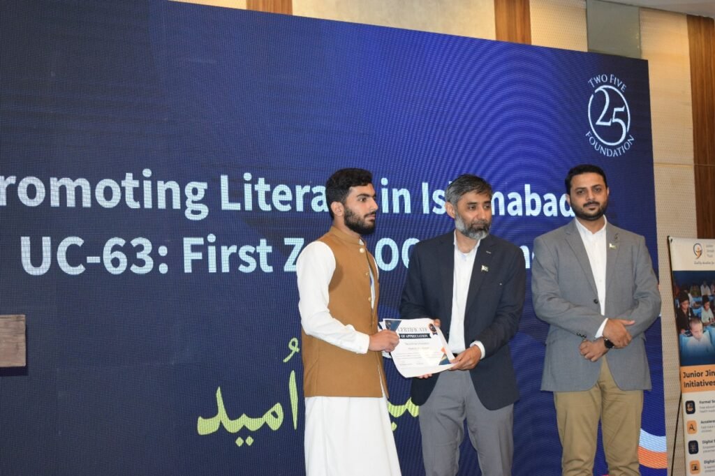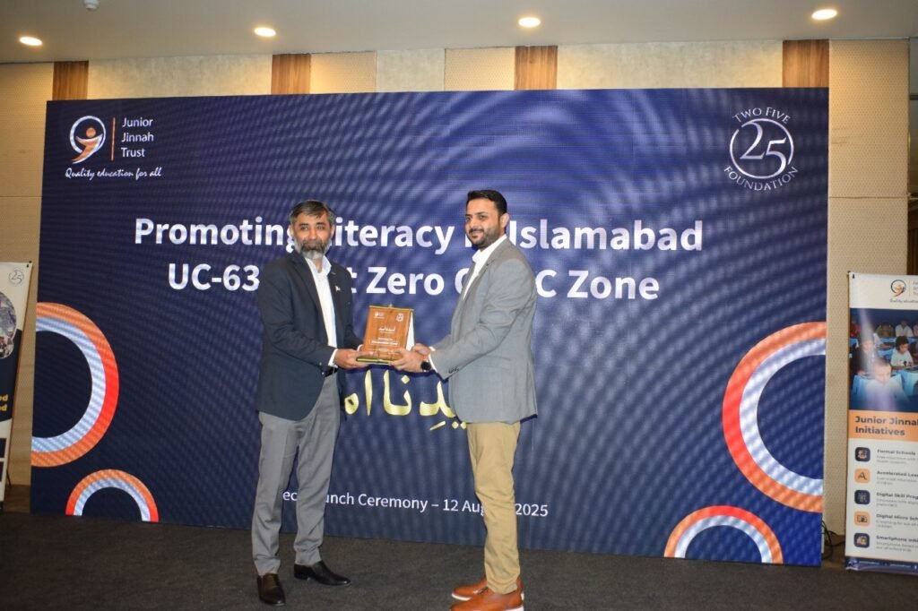 جونیئر جناح ٹرسٹ کے زیر اہتمام امید ہے نا امید کے نام سے جشن ازادی کے موقع پر برما ٹاؤن اسلام آباد یو سی نمبر 63 کو زیرو اؤٹ اف سکول چلڈرن ماڈل پراجیکٹ لانچنگ سرمانی کا انعقاد کیا گیا ،یو سی ماڈل پراجیکٹ کی کامیابی پر اسلام آباد کے تمام دیہی علاقوں میں ماڈل پراجیکٹ کو شروع کریں گے زیرو اؤٹ اف سکول سٹی اسلام آباد ہمارا ہدف ہے، تمام معاشرتی اکائیاں ہمارا ساتھ دیں، قائد کا پاکستان تعلیم کی روشنی سےہی ترقی کرے گا ان خیالات کا اظہار ڈائریکٹر جونیئر جناح ٹرسٹ محمد الخیام نے امید نا امید سرمنی سے خطاب کرتے ہوئے کیا.انھوں نے کہا کہ جونیئر جناح ٹرسٹ نے جشن ازادی کے موقع امید ہے نا امید کے نام سے تعلیم سے محروم بچوں کے لیے مہم لانچ کر کے یہ ثابت کیا ہے کہ ہم ہی ان مایوس اور محروم بچوں کے لیے امید کی کرن بنیں گے