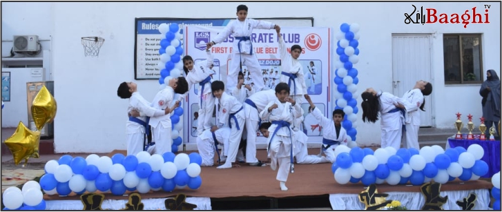 سیالکوٹ،باغی ٹی وی(بیوروچیف شاہدریاض) لاہور گرامر سکول میں کراٹے کی بلیو بیلٹ کے حوالے سے ایک پروقار تقریب کا انعقاد کیا گیا۔ تقریب کی مہمان خصوصی ممبر پنجاب اسمبلی میڈم شکیلہ جواد اور مسٹر شاہنواز بٹ تھے۔ سکول کی پرنسپل ارم وسیم اور کوآرڈینیٹر انجم عطف بخاری کی زیر نگرانی طلبہ نے خصوصی پرفارمنس پیش کی۔