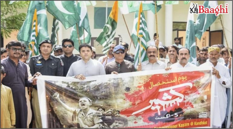 ضلع کشمور کندھ کوٹ میں ڈپٹی کمشنر آغا شیر زمان کی قیادت میں ڈپٹی کمشنر آفس سے گھنٹہ گھر تک ریلی نکالی گئی۔ ای ایس پی فراز، ڈی ایچ او ڈاکٹر اعجاز علی شاہ، اسسٹنٹ کمشنر سید علی رضا اور متعدد افسران نے شرکت کی۔ شرکاء نے پلے کارڈز اور بینرز اٹھا رکھے تھے جن پر بھارتی ظلم کی مذمت اور کشمیریوں کی حمایت کے نعرے درج تھے۔ ڈپٹی کمشنر و دیگر مقررین نے کہا کہ کشمیر پاکستان کا اٹوٹ انگ ہے، اقوامِ متحدہ مسئلہ کشمیر پر عملی اقدامات کرے۔ مودی حکومت کی فاشزم پالیسیوں سے کشمیریوں کی آزادی کی جدوجہد کو دبایا نہیں جا سکتا۔