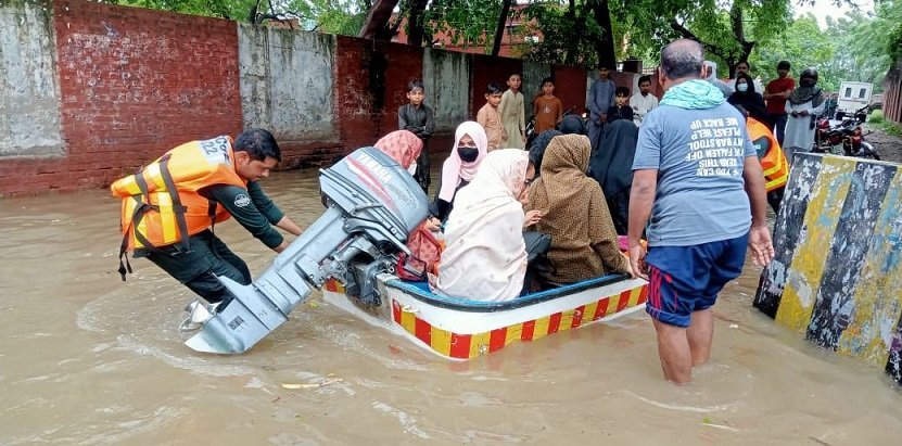 قصور( نامہ نگار طارق نوید سندھو )گورنمنٹ وومن کالج دریا میں تبدیل ،اساتذہ اور طالبات کو ریسکیو ٹیموں نے کشتی کے ذریعہ باہر نکالا