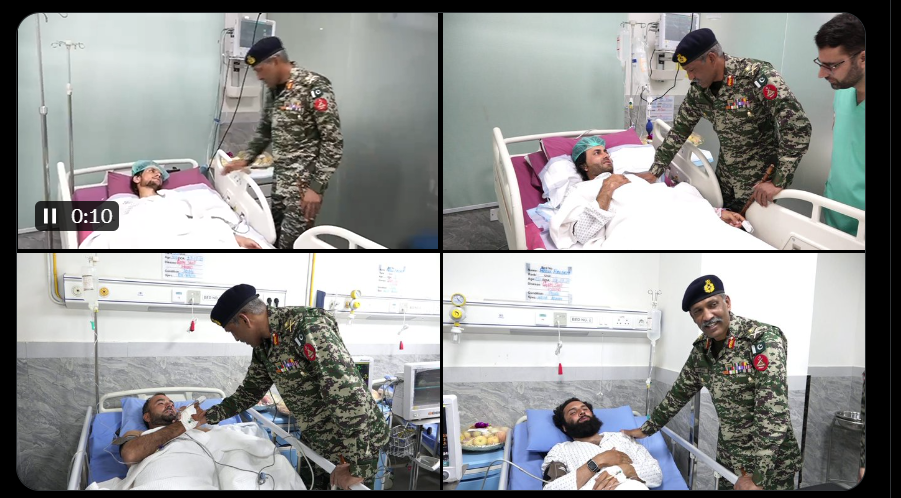 آئی جی خیبر پختونخوا نارتھ نےایف سی ہسپتال میں وادیِ تیراہ میں خوارج کی فائرنگ سے ہونے والے زخمیوں کی عیادت کی،آئی جی ایف سی خیبر پختونخوا نارتھ، میجر جنرل راؤ عمران سرتاج نے فرنٹیئر کور ٹیچنگ ہسپتال میں وادی تیراہ کے زخمیوں کی عیادت کی۔زخمیوں نے آئی جی ایف سی نارتھ کو خوارج کی فائرنگ کے بارے میں تفصیل سے آگاہ کیا۔زخمیوں نے اپنے علاج پر اطمینان کا اظہار کیا۔واقعے کے زخمیوں نے خوارج سے اپنے علاقے کو پاک کرنے اور ایک فوج کے شانہ با شانہ خوارج کے خلاف لڑنے کے عزم کو دہرایا۔زخمیوں نے پاک فوج اور ایف سی نارتھ کا مفت علاج معالجہ فراہم کرنے پر شکریہ ادا کیا۔