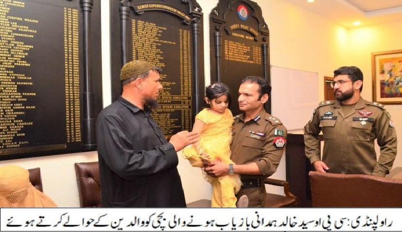 سی پی او سید خالد ہمدانی نے ایس پی راول، ایس ڈی پی او سٹی، ایس ایچ او رتہ امرال اور ٹیم کو شاباش دیتے ہوئے کہاکہ بچی کی بحفاظت بازیابی ایک چیلنج تھا، جسے رتہ امرال پولیس نے بخوبی سرانجام دیا،15ماہ سے اغواء بچی کو والدین کے حوالے کرنا باعث مسرت واطمینان ہے، بچی کے والدین نے سی پی او سید خالد ہمدانی اور راولپنڈی پولیس کا شکریہ ادا کیا۔