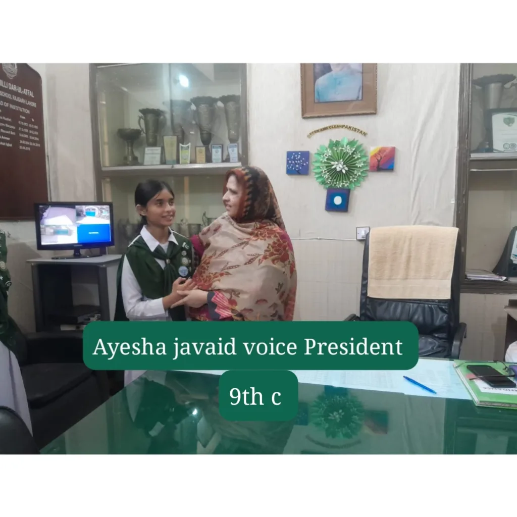 گورنمنٹ   ملی دارالاطفال  گرلزسکول راجگڑھ میں صدر کا انتخاب میرب فاطمہ نے جیت لیا، میرب فاطمہ جماعت دہم کی طالبہ ہیں جنہوں نے بھر پورانداز میں انتخابی مہم چلائی اور کامیابی حاصل کی،عائشہ جاوید بطور نائب صدر کامیاب ہوئی ہیں، خدیجہ عمران نے سیکرٹری جنرل کی نشست پر کامیابی حاصل کی،فاطمہ گیلانی فنانس سیکرٹری کی نشست پر انتخاب جیتی ہیں، کامیابی پر پرنسپل و اساتذہ نے طالبات کو مبارکباد دی ہے.