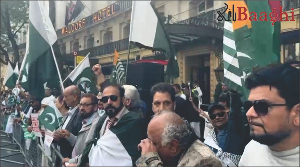 لندن(باغی ٹی وی) بھارتی ہائی کمیشن کے باہر پاک فوج زندہ باد،مودی مردہ باد کے فلک شگاف نعرے