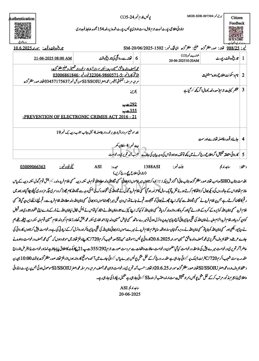 پولیس ترجمان کے مطابق ملزم نے اپنے جرائم کا اعتراف کر لیا ہے۔ مقدمہ تعزیرات پاکستان اور پیکا ایکٹ 2016 کی متعلقہ دفعات کے تحت درج کیا گیا ہے، جبکہ کیس کی نگرانی کے لیے ڈی ایس پی سٹی کو ذمہ داری سونپی گئی ہے۔ پولیس دیگر متاثرین سے رابطے کر رہی ہے تاکہ مزید انکشافات اور قانونی کارروائی کو یقینی بنایا جا سکے۔