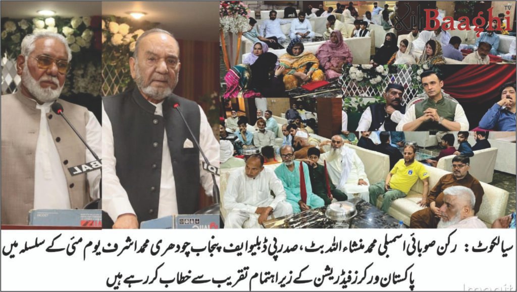 سیالکوٹ (باغی ٹی وی ،بیوروچیف شاہد ریاض)یومِ مزدور 2025 کے موقع پر پاکستان ورکرز فیڈریشن پنجاب کے زیرِ اہتمام ایک سالانہ تقریب کا انعقاد کیا گیا جس میں رکنِ صوبائی اسمبلی محمد منشاءاللہ بٹ نے بطورِ مہمانِ خصوصی شرکت کی۔ انہوں نے اپنے خطاب میں سیالکوٹ کے ہنر مندوں اور محنت کشوں کی مہارت کو خراجِ تحسین پیش کرتے ہوئے کہا کہ یہاں تیار ہونے والے سرجیکل آلات، چمڑے کی مصنوعات اور کھیلوں کا سامان اپنی اعلیٰ معیار اور پائیداری کے باعث دنیا بھر میں مشہور ہیں۔ ان صنعتوں کے ذریعے نہ صرف پاکستان کا نام روشن ہوا ہے بلکہ اربوں ڈالر کا قیمتی زرمبادلہ بھی حاصل ہو رہا ہے۔